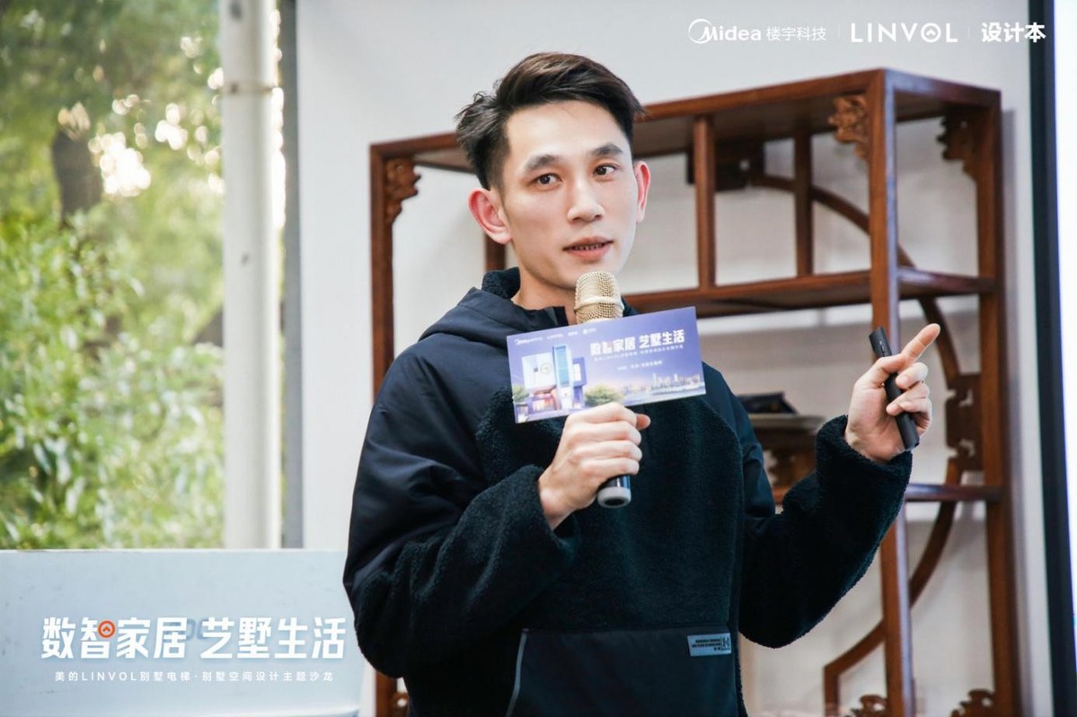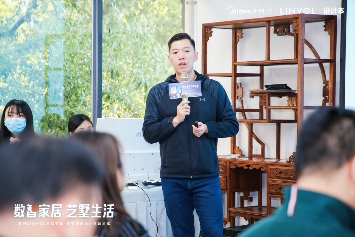 在活动活动伊始,作为主办方代表,美的楼宇科技市场推广经理汤小君先生带来《智享体验·悦享生活》主题分享,与到场设计师分享美的LINVOL品牌的发展历程与品牌故事。LINVOL数智电梯是美的集团楼宇科技事业部旗下专业的数智电梯品牌,目前已拥有技术专利300+项,参与国家、行业电梯标准法规制定20余项,致力于成为全球最安全、舒适、智能的楼宇全生命周期交通解决方案提供商。汤小君提到,美的别墅梯与市场上其他品牌别墅梯的优势在于更智能、更安全、更舒适、空间更大、更美观。