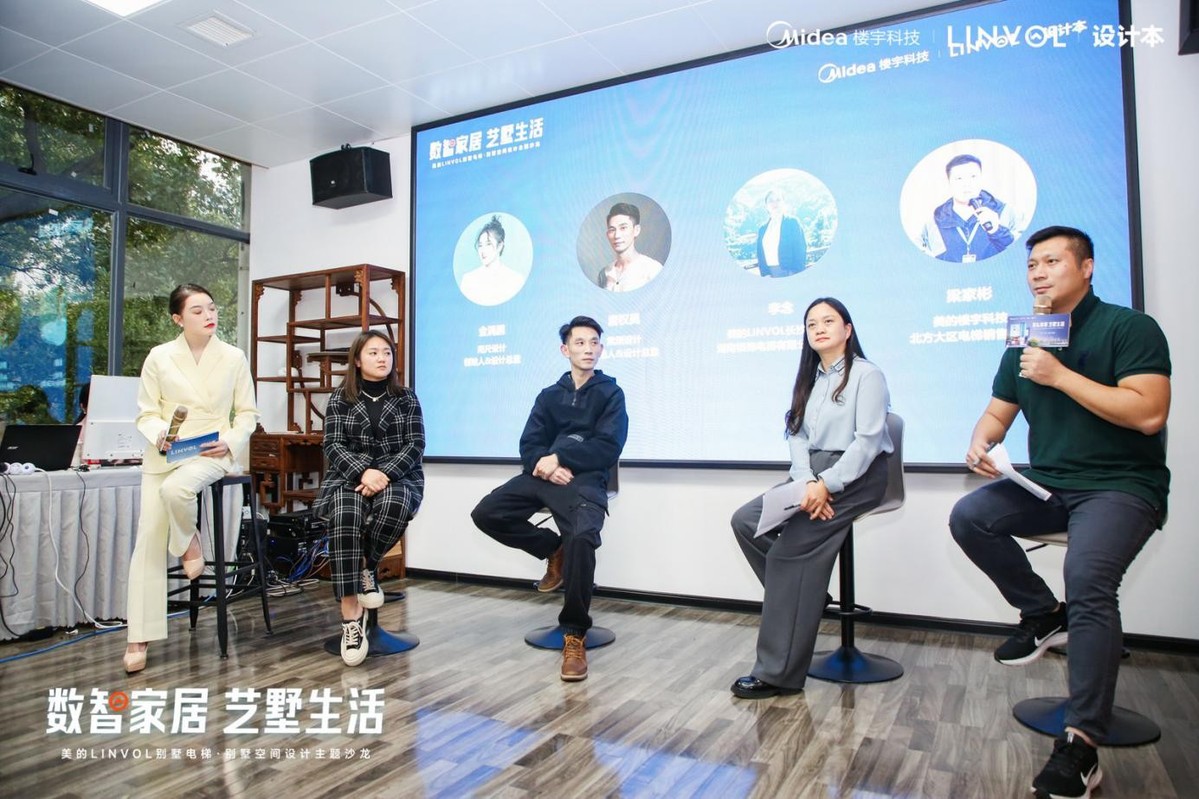 在论坛环节,两位设计师与美的楼宇科技北方大区电梯销售总监梁家彬、美的LINVOL云南别墅梯运营商、湖南镁锦电梯有限公司总经理李念围绕别墅电梯,就数智电梯发展、电梯性能及美学的设计考量,业主体验、交付落地等话题展开激烈讨论。