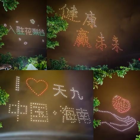 无独有偶,天九通航携手海南永涛集团打造的花梨谷国际共享农庄,近期迎来了数批“庄主”入园,夜幕降临,天九通航旗下300架无人机编队再度集结,为现场企业家、游客呈现了多场令人震撼、别具一格的灯光秀,让位于世界长寿乡的养生天堂海南花梨谷,更加耀眼、更让人着迷。