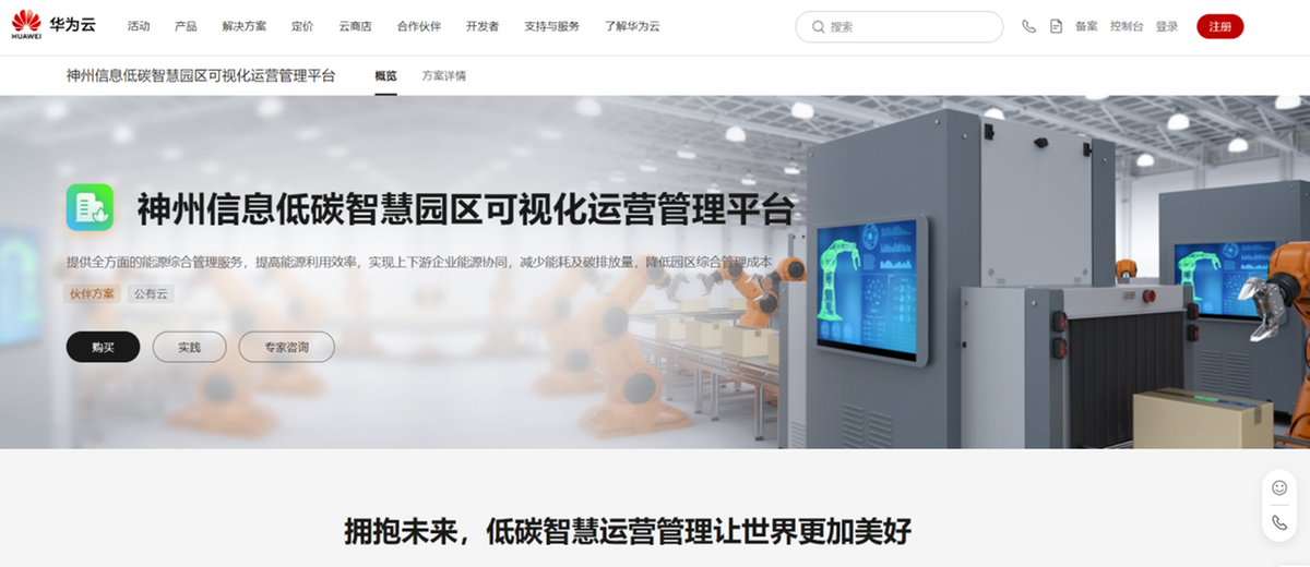 近日,神州信息信创BG技术中心团队联合华为云生态团队打造的低碳智慧园区可视化运营管理平台解决方案已正式上架华为云官网解决方案专区,成为园区领域华为云伙伴Lead基线解决方案之一。