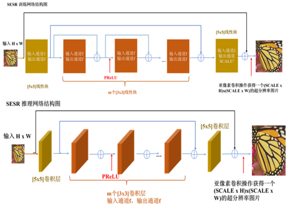 在移动设备上,如何确保超分领域大模型既高效又省电成为了关键问题。以专门针对移动设备进行优化的SESR模型为例,它主要使用了一种称为“结构重参数化”的方法,同时利用多分支模型训练时的高性能和单路模型推理时的效率,让模型在保持轻量的同时仍能有效地提升图像质量。