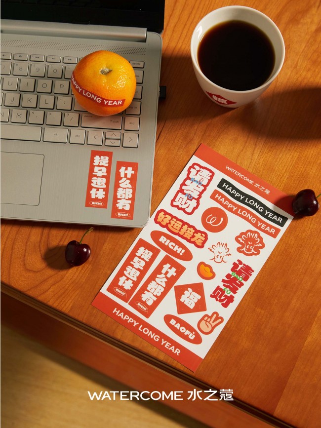 送礼送福气,水之蔻还特别定制龙年红包和过年幸运贴纸。水之蔻为用户定制的幸运贴纸,可以贴手机、贴电脑、贴照片,欢迎解锁各种“贴贴”方式,让生活沾喜气。