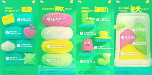 除线上公益外,Soul还联合WABC在巨鹿路794号开启了一场 绒画孤独 · 自闭症儿童公益画展,店内目光所及之处的所有摆件皆“身穿绒衣”,现场还有数个创意毛绒玩偶,进店的每个人会被温暖、柔和的氛围感染,获得一些放松,“绒化”孤独。
