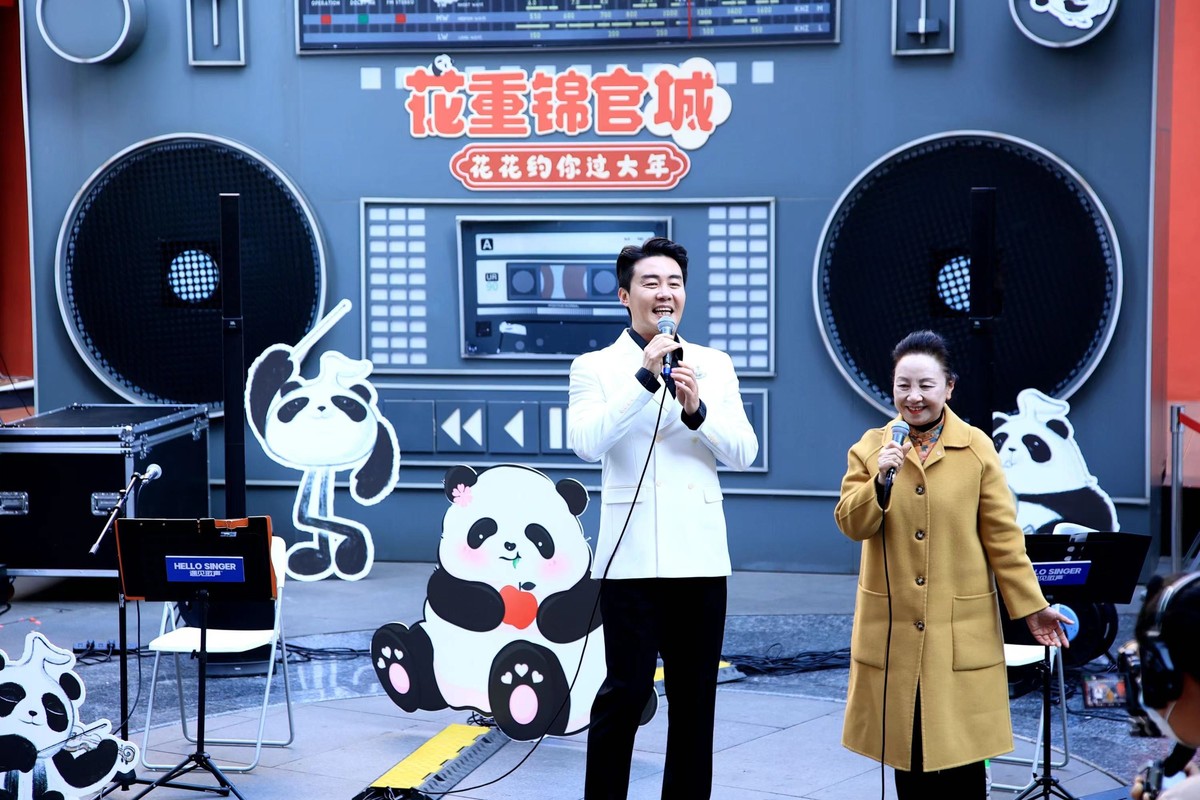 从今日起至17日,成都市成华区举行“花重锦官城——花花陪过年·音乐嗨翻天”新春活动。最让人期待的是,收获了一众粉丝的熊猫“花花”将作为新春活动的推荐官,联动男高音歌唱家张英席,举行“花花和你一起过大年”全民街头音乐会,与市民游客一起欢欢喜喜过大年。