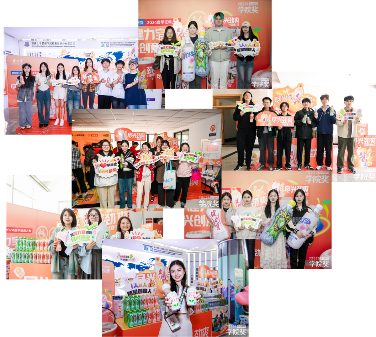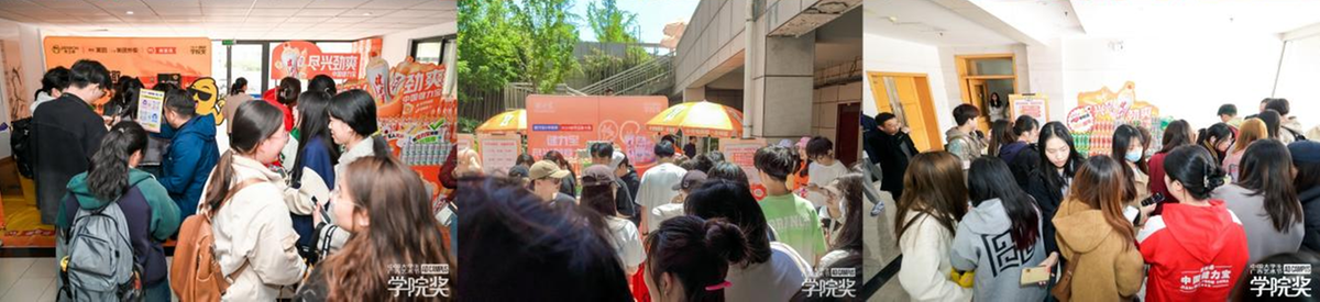伴随健力宝尽兴创意大赛热度的不断升温,2024年3月中旬至4月底,健力宝沿着创意大讲堂的航线,空降六座城市,走进安徽大学、山东建筑大学、暨南大学、郑州大学、浙大城市学院、西北大学这六所蕴含深厚人文气息的高校校园,打造了一次次青春洋溢的灵感邂逅!