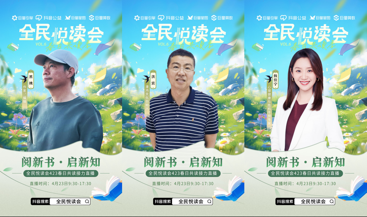 此次423直播活动中,全民悦读会走进广东省立中山图书馆,聚合古籍修复专家、抖音公益古籍修复运营经理、畅销人气作家、图书出版行业负责人等,以古籍传承、新书发布、悦读对话为纽带,畅聊书籍与爱书人的故事,以新视角呈现经典,以新观点激荡全民阅读风潮。数据显示,当日直播曝光量达600万+ ,总观看人次达120万+ ,在线人数峰值高达1.6万+ ,带领众多热爱阅读的人在春暖花开的4月“悦读阅美”。