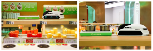回转火锅餐厅的送餐方式也不同于以往人工上菜这种模式,而是通过传送带自动送餐,将源源不断的新鲜食材送至旋转吧台,减少了以往点餐、上菜等环节,节省了时间,让每一位用餐者都可以根据自己的节奏随时享受美食,也更环保。这样一来,消费者在繁忙的工作日,也可以在午餐时段享受火锅。在部分小肥羊回转火锅餐厅,消费者还会看到用小火车送餐,收获别样的用餐体验。