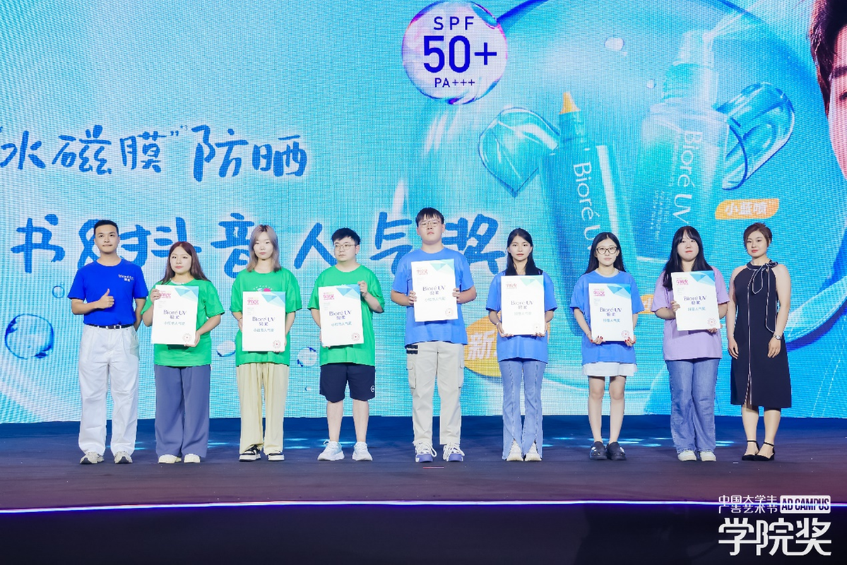 为激发更多青年的创意思考和参与热情,除常规奖项外,碧柔还特别设立了“小红书人气奖”和“抖音人气奖”,鼓励同学们在主流社媒平台秀出年轻化的创意表达,助力优质内容出圈。碧柔以双赛道打响声势,小红书和抖音平台#碧柔水磁膜防晒学院奖 #碧柔水磁膜防晒 双话题下沉淀千余条学生创意内容,实力拦截年轻用户关注。盛典现场,花王碧柔品牌代表许竣淇为小红书&抖音人气奖获奖学子们颁发荣誉。