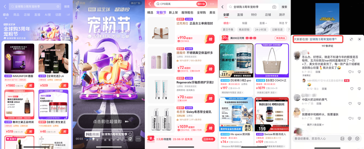 抖音商城全球购3周年宠粉节期间,无论是热点话题的打造、明星达人短视频种草,还是多场域的资源联动,都很好地解决了消费者对海外品牌商品了解难、发现难的问题,为其提供了全新的销售场景,为生意增长带来可能,也诠释了全域兴趣电商的优势。