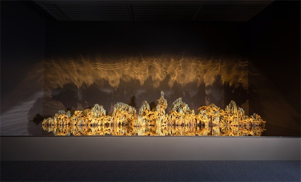 而最令人瞩目的,莫过于朱军岷先生对熔铜艺术的介绍。2006年,常州天宁宝塔突遭大火,朱炳仁在修复佛塔时,意外发现熔铜结晶体如天工造就,铜液自由流畅的形态触发了他的艺术灵性,从而创立了“熔铜艺术”。