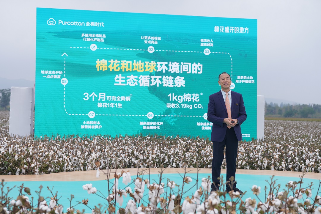 活动伊始,全棉时代创始人李建全先生以“全棉改变世界”的主题演讲,分享了棉花的十大好处和品牌创立的初衷。和棉花打交道四十余载,李建全一直致力于研究和推广棉花的价值。棉花是一种对人类健康、对生态环境都极为友好的天然材料。棉纤维天生的多孔中空结构,自然含水率8%,具有良好的透气性、舒适性、保暖性。棉花耐旱耐盐碱,能在戈壁沙漠中顽强生长。同时,棉花可自然降解,变成有机肥料,为我们的生活带来幸福体验的同时,也让地球生态可持续。“我想让更多人知道和体验棉花的好,做一个能走进千家万户、让中国人为之骄傲的民族品牌。”