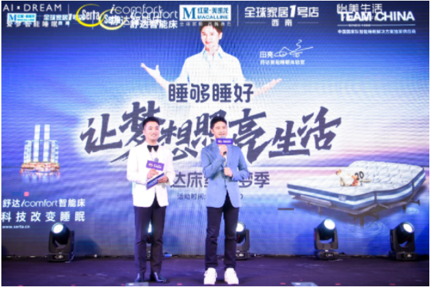 在现场,作为舒达智能睡眠体验官,田亮身着优雅正装,以他标志性的亲和笑容步入会场,瞬间点燃了现场观众的热情。他不仅在致辞中分享了自己对优质睡眠的深刻理解与追求,还亲自体验了舒达最新推出的iComfort智能床系列,对其卓越的舒适体验、智能化的睡眠监测与调节功能赞不绝口,表示这将是现代家庭追求高品质生活的理想选择。田亮指出,舒达作为TEAM CHINA智能睡眠解决方案供应商品牌,是他本人非常信赖的品牌。