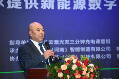 奔腾(河南)智能制造有限公司副总裁陈杨详细介绍《津斗云激光充三分钟充电新能源应用解决方案》。