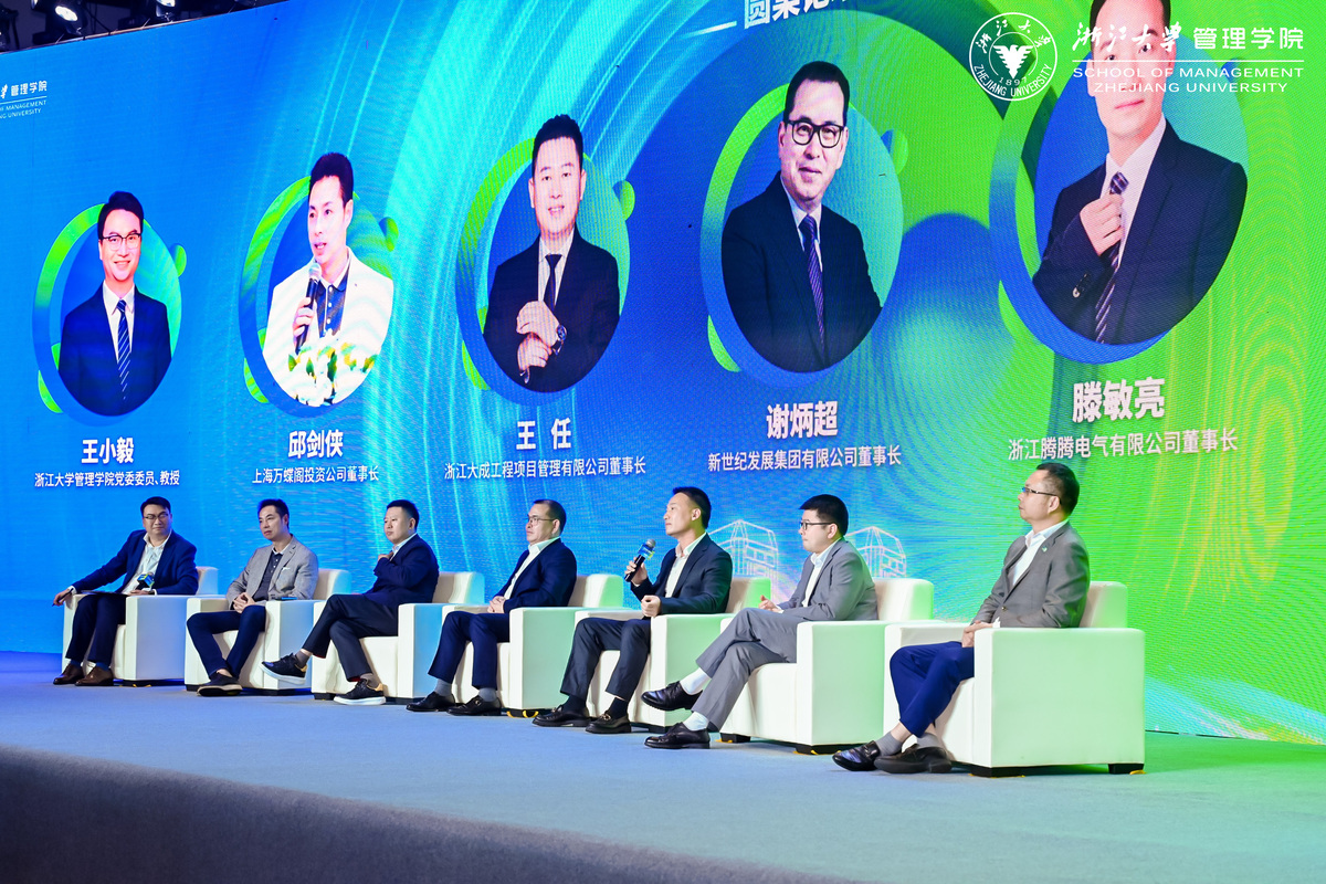随后的圆桌论坛以“数智融合 共创共享”为主题,由浙江大学管理学院党委委员王小毅主持。新世纪发展集团董事长谢炳超、浙江腾腾电气有限公司董事长滕敏亮、泰昌集团有限公司董事长兼总裁张鹏飞、浙江大成工程项目管理有限公司董事长王任、上海万蝶阁投资公司董事长邱剑侠、温州和平国际医院有限公司董事长薛志辉等多位企业家围绕未来城市建设、光伏业务的数智融合、投资行业的共创共享、工程项目管理的信息壁垒打破、电力行业流程优化及医疗服务的资源共享等话题展开深入探讨,为企业在数智时代的创新发展提供了新的思路和见解。