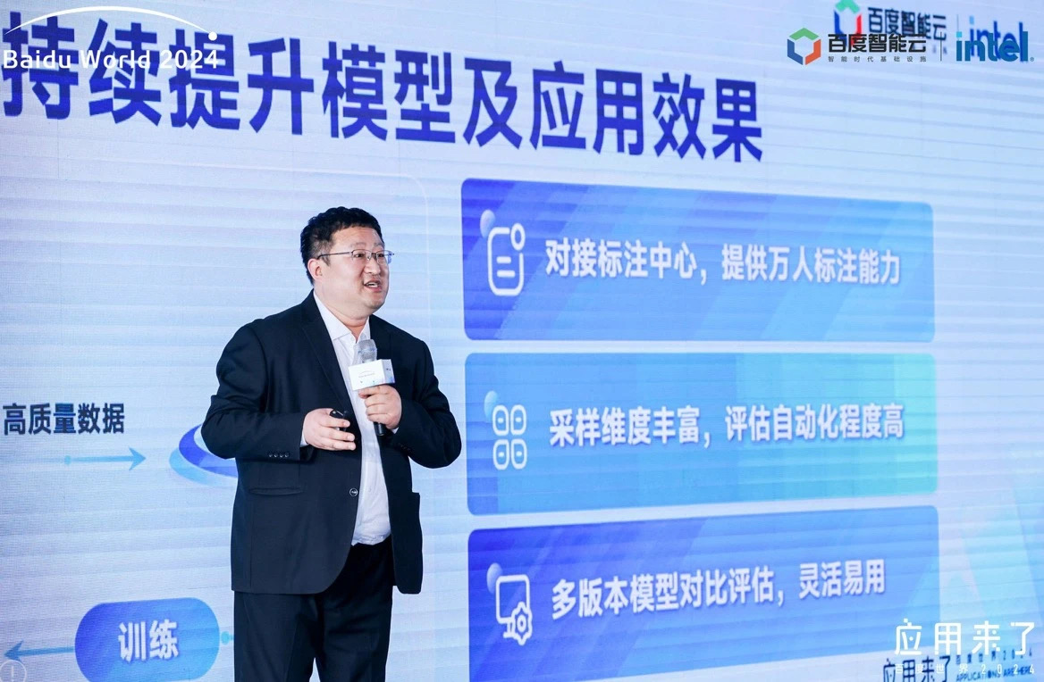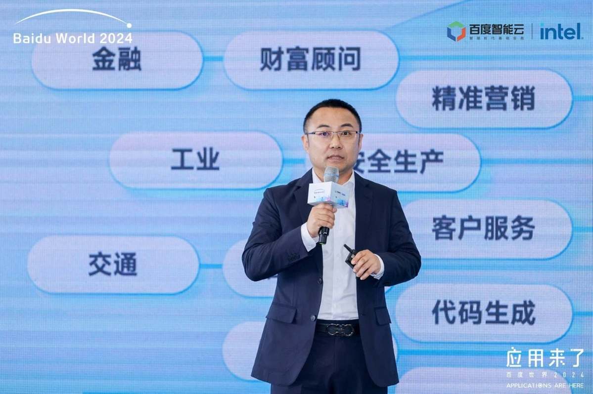 此次论坛中,英特尔作为百度智能云的深度合作伙伴,也深入介绍了与千帆大模型平台长期紧密合作的最新成果。今年9月,英特尔正式发布英特尔至强6性能核处理器,为AI、数据分析、科学计算等计算密集型业务提供卓越性能。英特尔高级云计算软件架构师郭彬在现场分享道,为了向广大用户提供基于CPU端极致优化的推理性能,用户在千帆ModelBuilder平台中,可以在模型推理部署以及prompt工程等多个应用场景选择Xeon CPU作为后端算力资源,使用CPU算力平台可以获得更高的性价比和更低的起建成本。