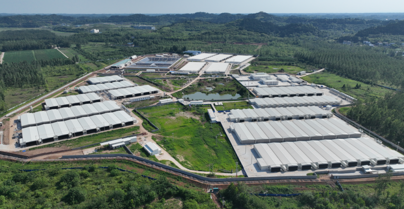 简阳项目设计年出栏规模10万头,为自繁自育自养、智能饲喂环控、种养循环利用为一体的现代化养殖场,总建筑面积74364.00㎡,共建保育、育肥一体舍76个单元、怀孕舍16个单元、哺乳舍16个单元以及后备舍9个单元。建设初期,充分借鉴崇州生猪养殖项目的建设管理经验,扎实推进勘测定界、交桩及控制点复测、图纸会审等工作,及时审核施工单位编制的工程进度计划。为确保安全“零”事故,利用碎片时间对各施工单位签订安全告知书,实行入场教育、组织安全演练。此外,广泛运用5G、大数据、云计算、物联网等新一代信息技术,构建“猪舍建设标准化、养殖饲喂自动化、生产管理智能化”的养殖产业化体系。2024年6月30日繁殖场首批次怀孕母猪的分娩,其中最高一窝产仔数达到了17头,初胎窝均产仔数12.54头,在行业内遥遥领先。