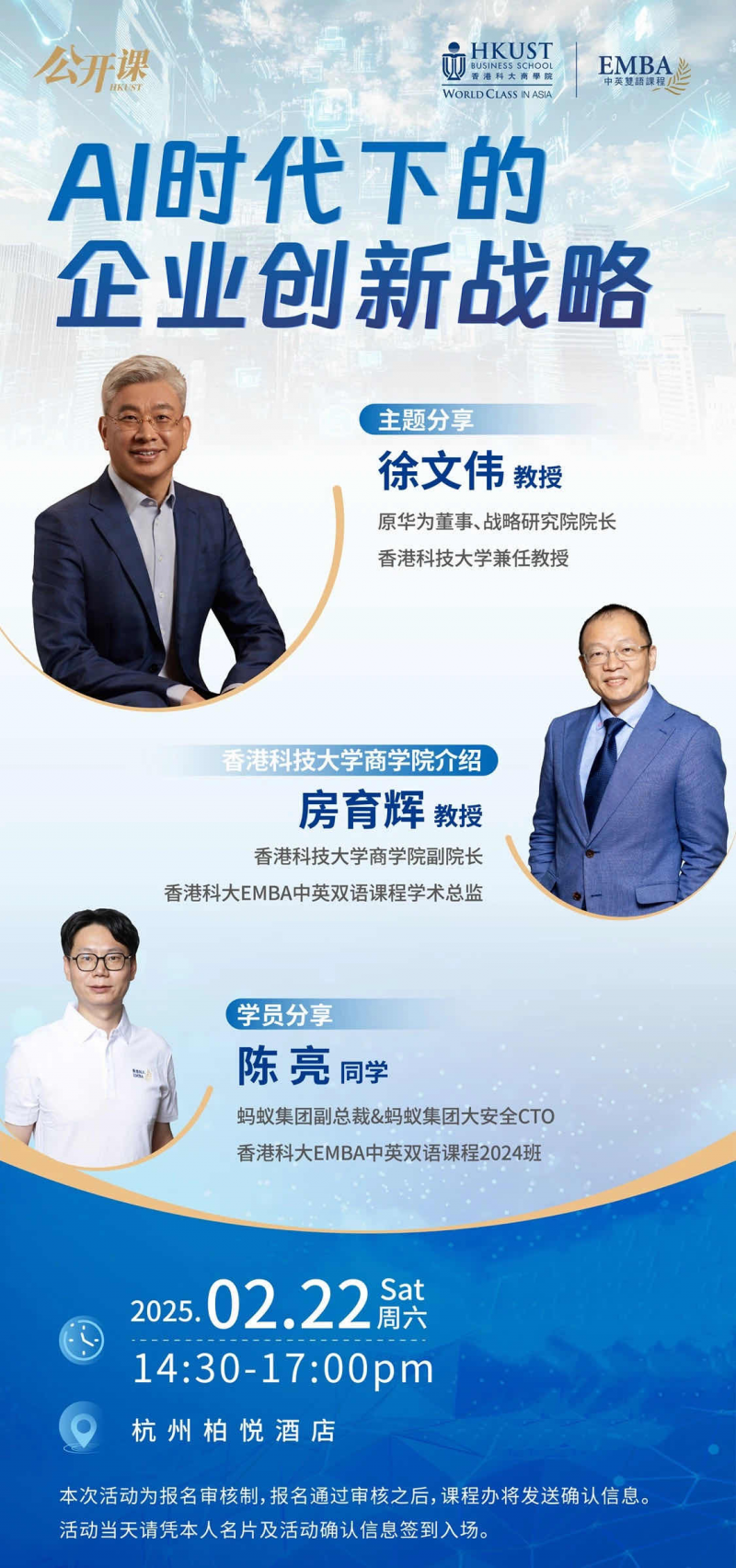杭州作为长三角科创走廊的核心节点,这里既有阿里系生态的数字化积淀,也孕育着硬科技突破的无限可能。香港科大EMBA中英双语课程2024班学员、蚂蚁集团副总裁&蚂蚁集团大安全CTO陈亮先生 将在讲座最后分享他在港科大就读的体验。
