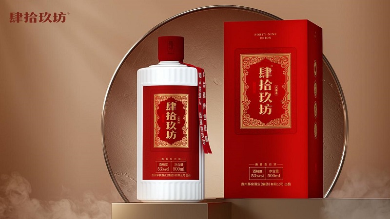 设计方面,肆拾玖坊大酱香在传统茅型瓶的基础上突破创新,瓶身上微微凸起的49条长短不一的“棱”,充满了东方美学山峦起伏的诗意,细节感和精致感拉满,且符合人体工程学,握感舒适不打滑。酒标和外盒,延续了肆拾玖坊传统的银票元素,同时又融合了“赤水河”、“红缨子糯高粱”、“肆拾玖坊千斤坛窖藏基地”的图标元素,更注重对于产区、产业、产品的表达。整体设计选用中国红,符合国人主流审美,也适用更多饮用场景,呈现了肆拾玖坊对酱酒品质的不懈追求。