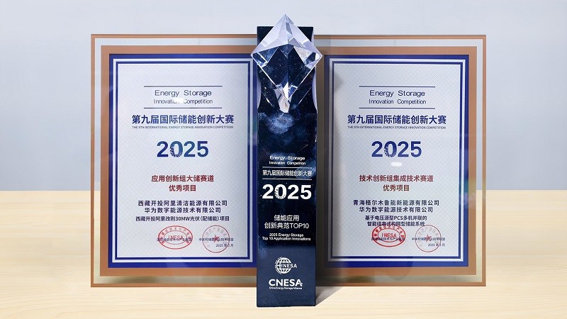 此外,华为荣膺第九届国际储能创新大赛诸多奖项,其中“西藏开投阿里改则30MW光伏(配储能)项目” 斩获“2025储能应用创新典范TOP10”奖项,并在应用创新组大储赛道荣获优秀项目;在技术创新组集成技术赛道,“基于电压源型PCS多机并联的智能组串式构网型储能系统”同样荣获优秀项目,再次彰显了行业实力。