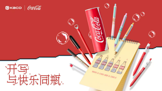 首度官宣的【可口可乐】联名系列,成为全场焦点。该系列以【可口可乐】经典红白配色、【可口可乐】经典瓶身设计为灵感,推出“拨拨乐”“拉环”“可乐熊”多款笔,以及A5螺旋本等产品,兼具趣味与实用性。两大品牌的跨界合作,不仅是产品创新,更是快乐理念的碰撞与深度融合,为用户打造“提笔即快乐”的体验。