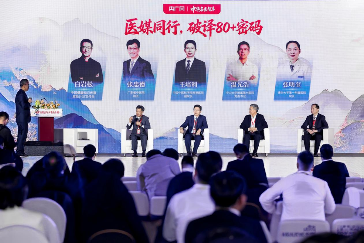 实现这一目标,需要各界配合做出哪些努力?盛典的圆桌环节,白岩松与广东省中医院院长张忠德、中国中医科学院西苑医院副院长王培利、中山大学附属第七医院党委书记温光浩、清华大学第一附属医院院长张明奎等嘉宾,就《医媒同行,破译80+密码》这一主题,展开深入探讨。