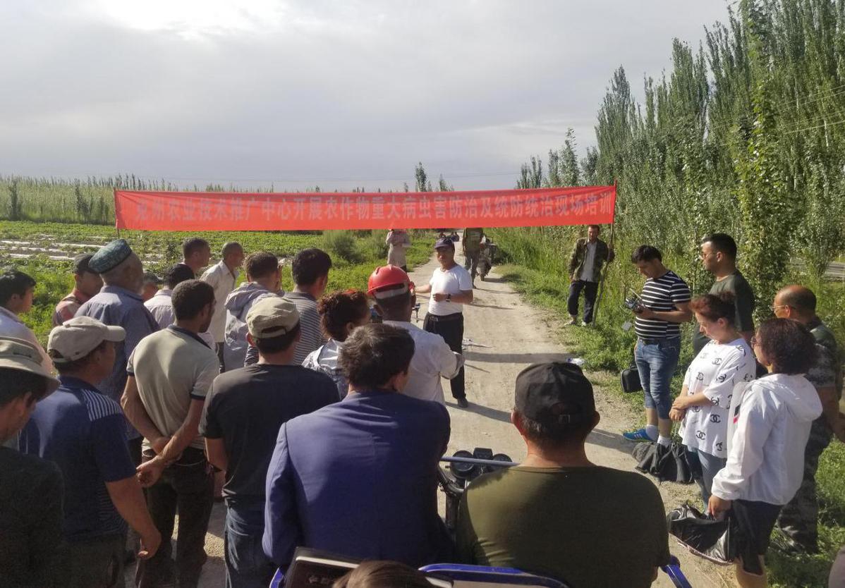 随着7月的到来,天气越来越炎热,伴随这酷暑,水晶瓜开始发生枯萎病,为了预防更多病害的发生,7月3日,皮拉勒乡墩都热村工作队邀请克州农业技术推广中心技术骨干在千亩水晶瓜地里举办了无人机喷药演示观摩会,并计划3天时间完成喷药任务,墩都热村水晶瓜种植户80余人参加现场演示观摩。